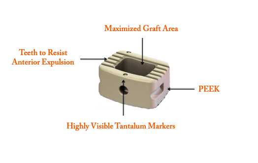 “Stop”style design straddles caspar pins for efficient unihibited usage
